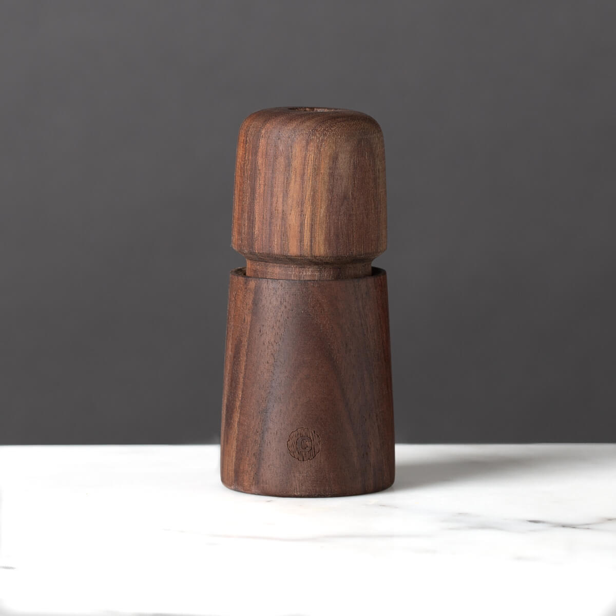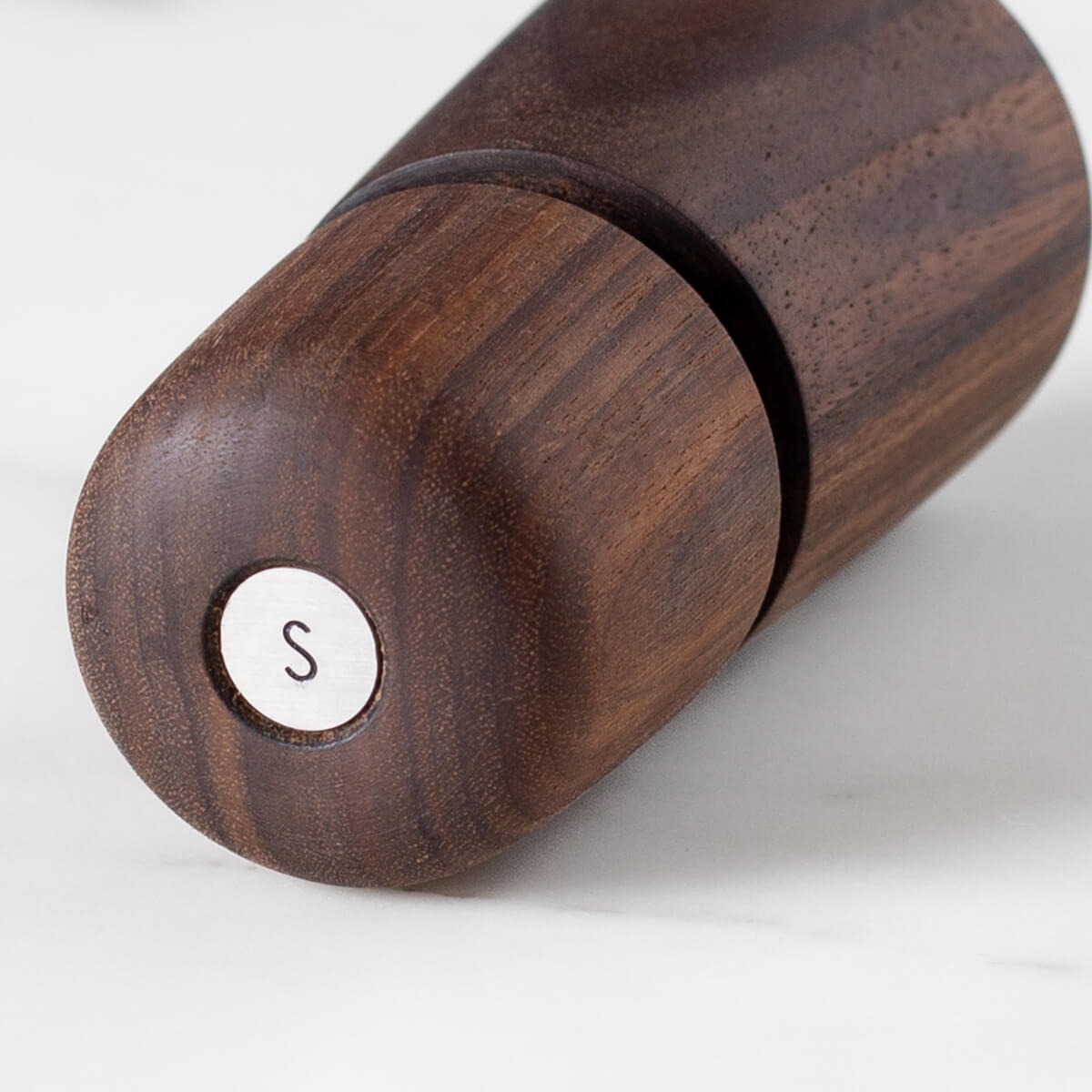 The Jesper can be used to grind Salt or Pepper. In order to keep track of what you’re grinding, there’s a little round magnetic disk recessed in the top of the mill. One side of the disk is engraved with an S and the other side with a P. Buy two if you want to create a set.