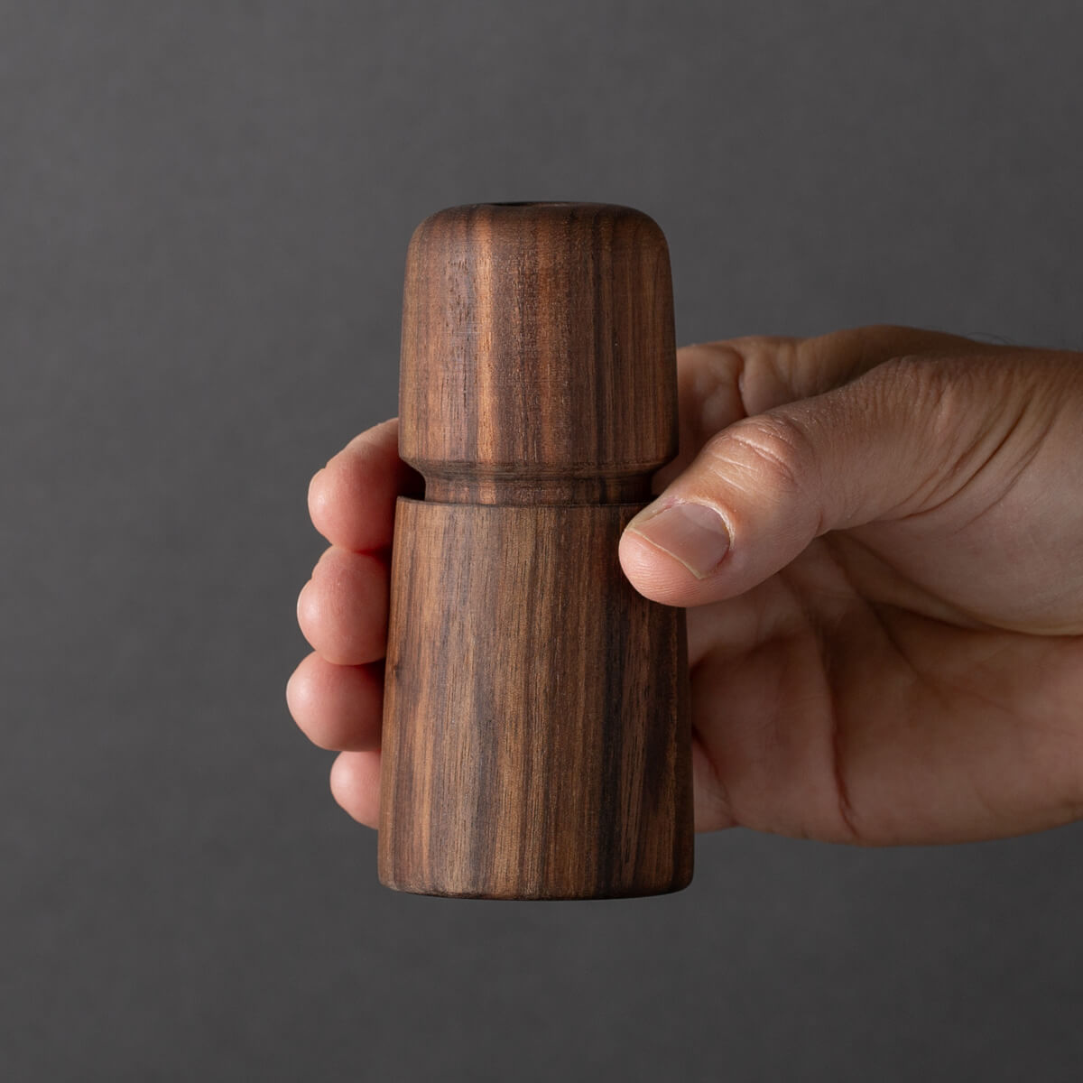This is the mini size 4.4"h Jesper Mill. Sold individually or as a set of two. Small enough to fit into a purse or a picnic basket, yet still packs the grinding power of larger mills. (Please note that this is a small capacity mill and only holds about 1/4 oz of peppercorns or salt.)